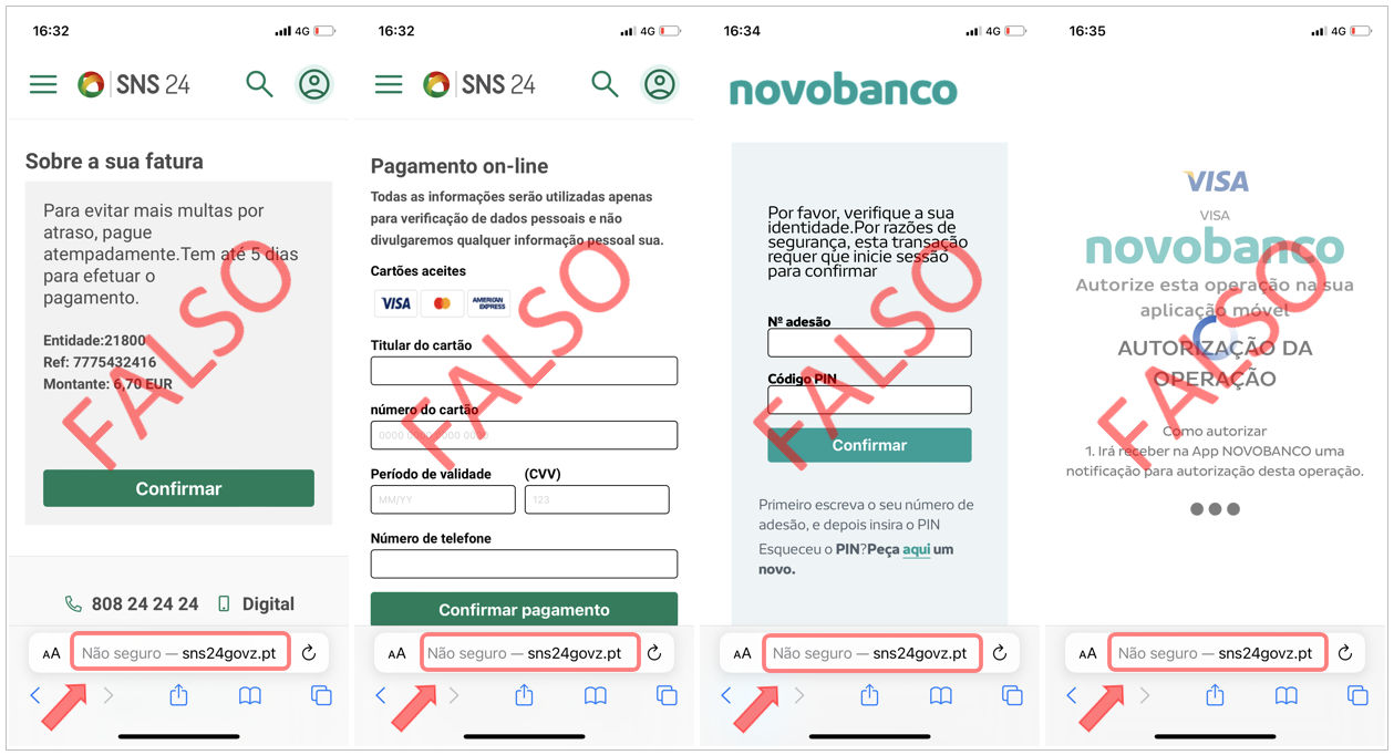 - NUNCA envia SMS com links com supostos pedidos de registo de dispositivos ou reativação de acessos sob ameaças de "multas".